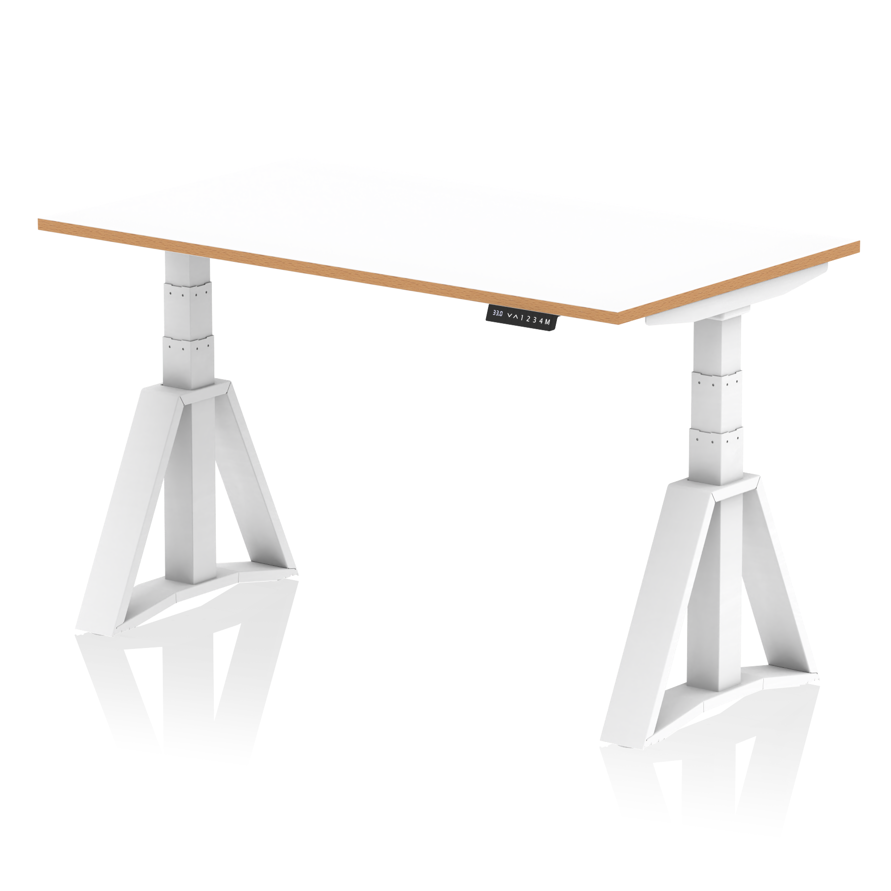 Oslo Air Height Adjustable Desk White Top Natural Wood Edge White Frame