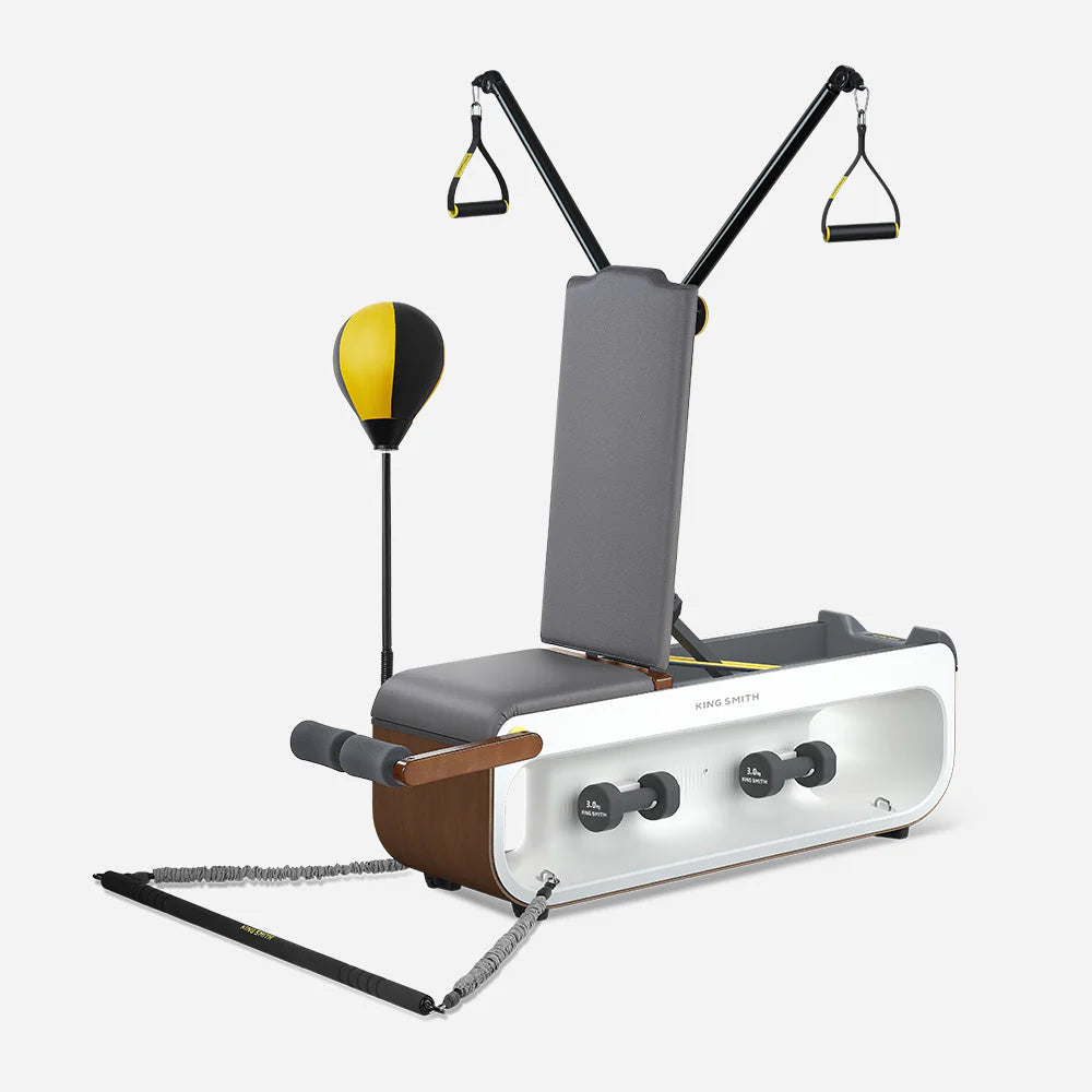 The King Smith 3-in-1 Adjustable Dumbbell Set seamlessly combines dumbbells, barbells, and kettlebells to offer a versatile, space-saving solution for your home gym. Its compact design minimises clutter, while the secure locking mechanism ensures a safe and stable workout. This durable set supports a wide range of exercises, making it a practical choice for fitness enthusiasts looking to maximise training results in a limited space.