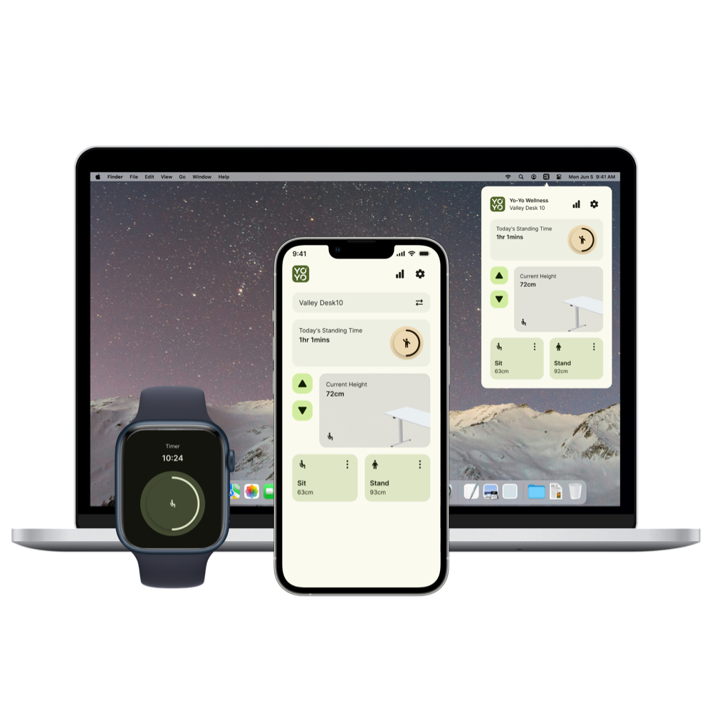 Download the Active Working® App to set heights, define goals, receive timer prompts and nudges, and track performance and calorie burn, all accessible via smartphone, smartwatch,or laptop.