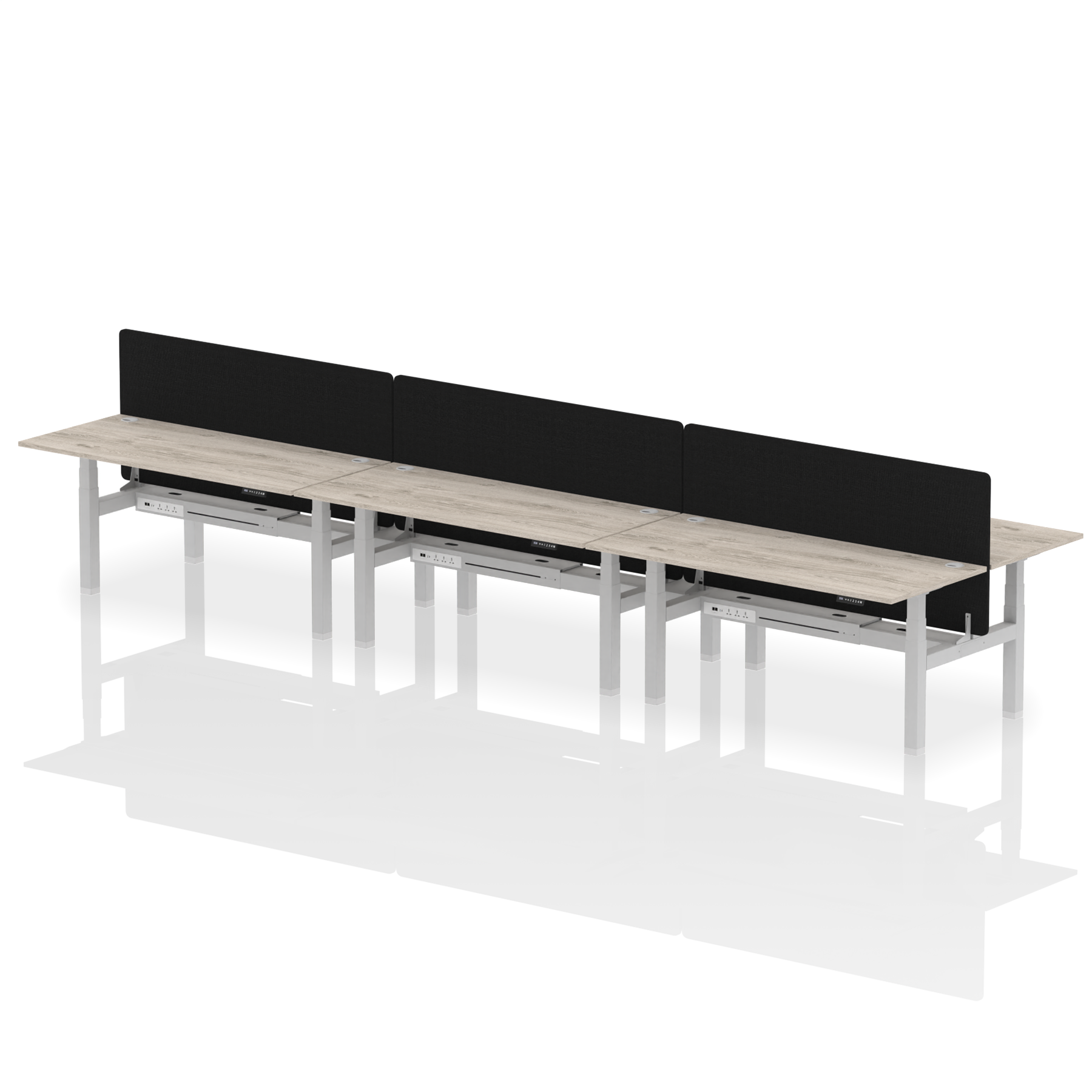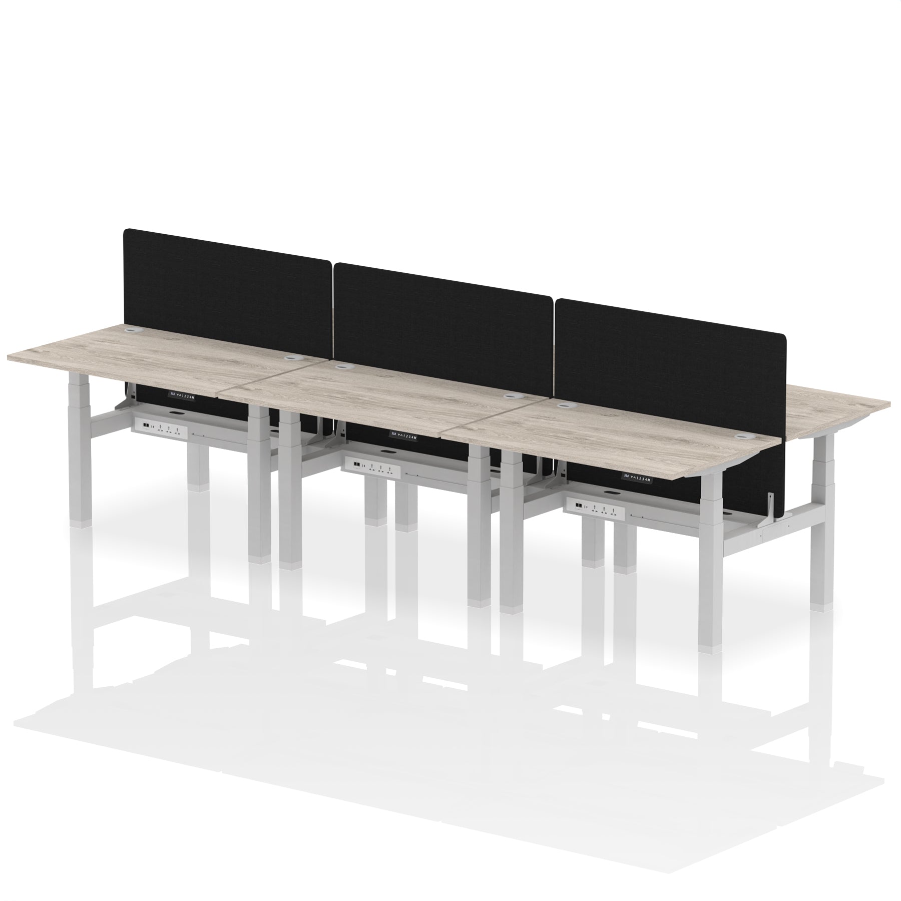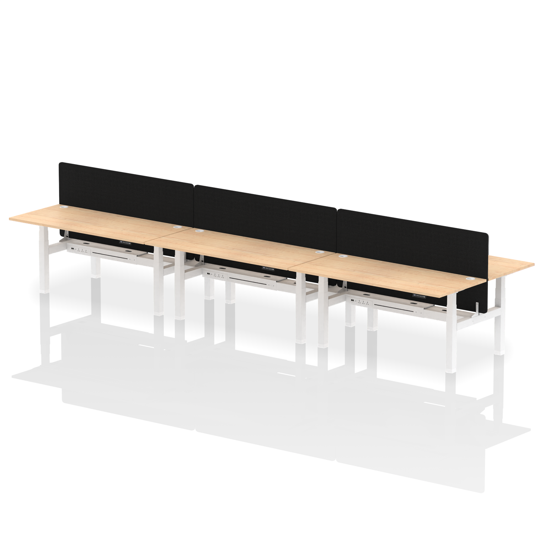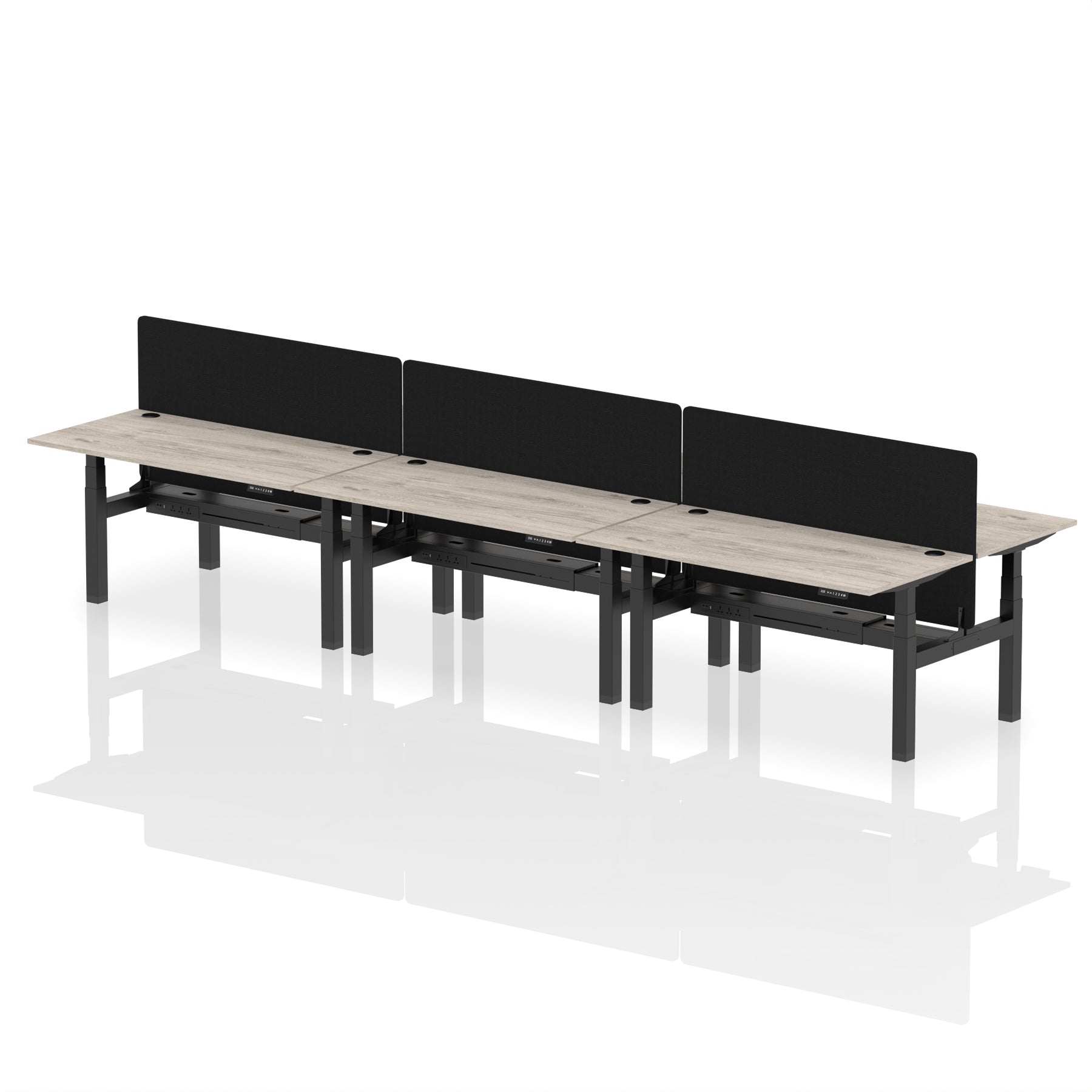 Air Back-to-Back Height Adjustable Bench Desk - 6 Person with Black Straight Screen