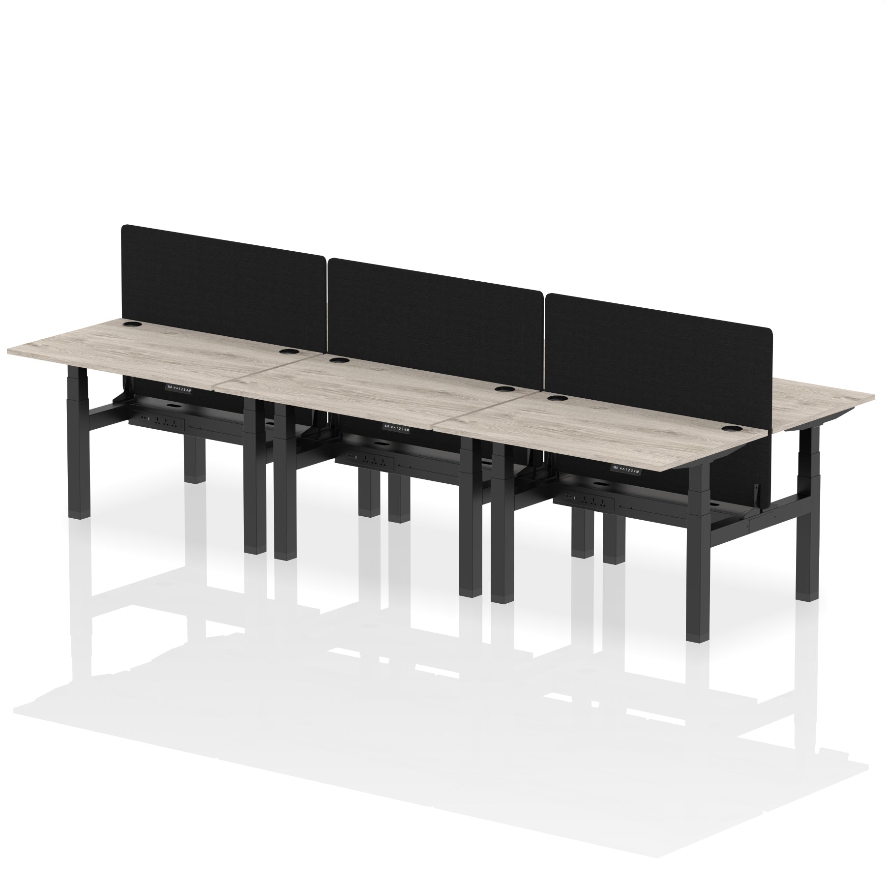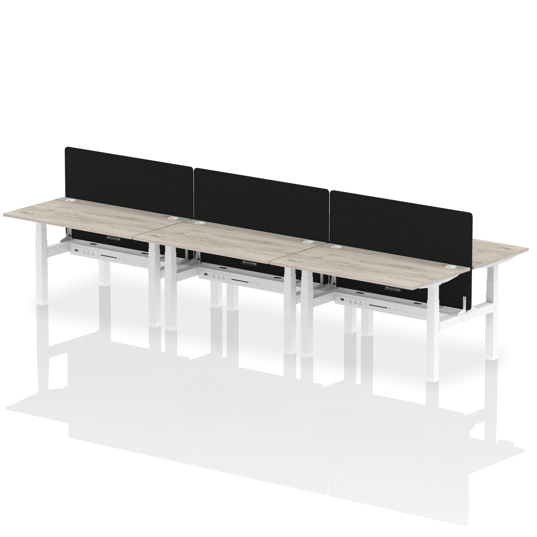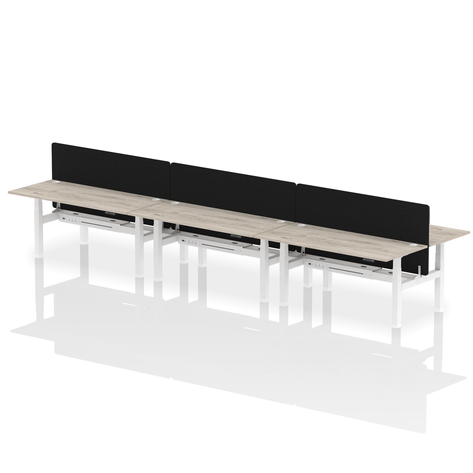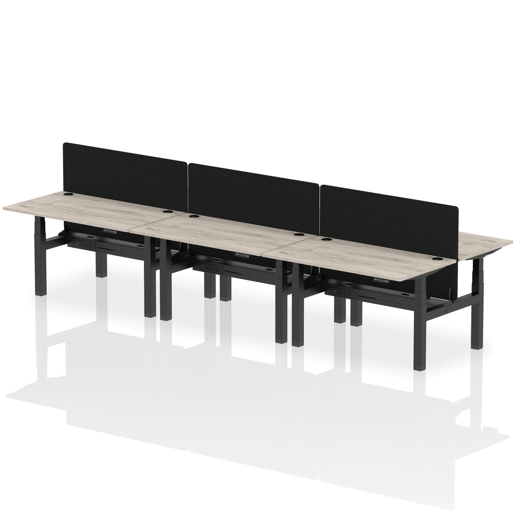 Air Back-to-Back Height Adjustable Bench Desk - 6 Person with Black Straight Screen