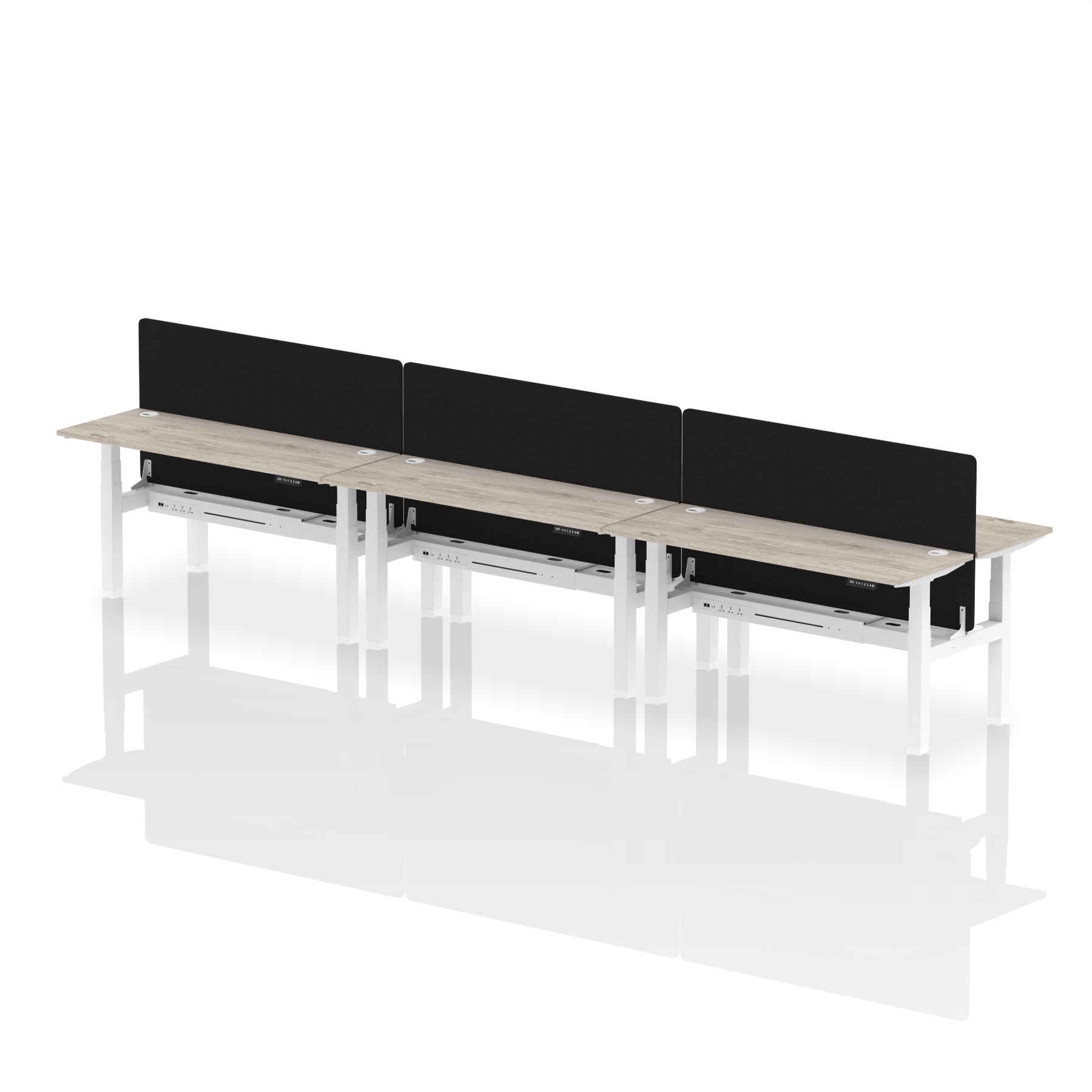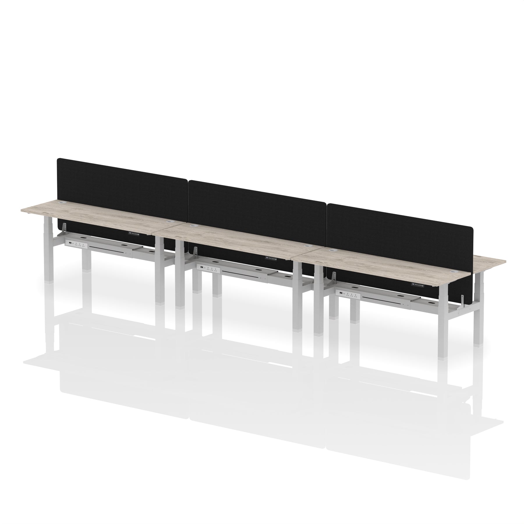 Air Back-to-Back Slimline Height Adjustable Bench Desk - 6 Person with Black Straight Screen