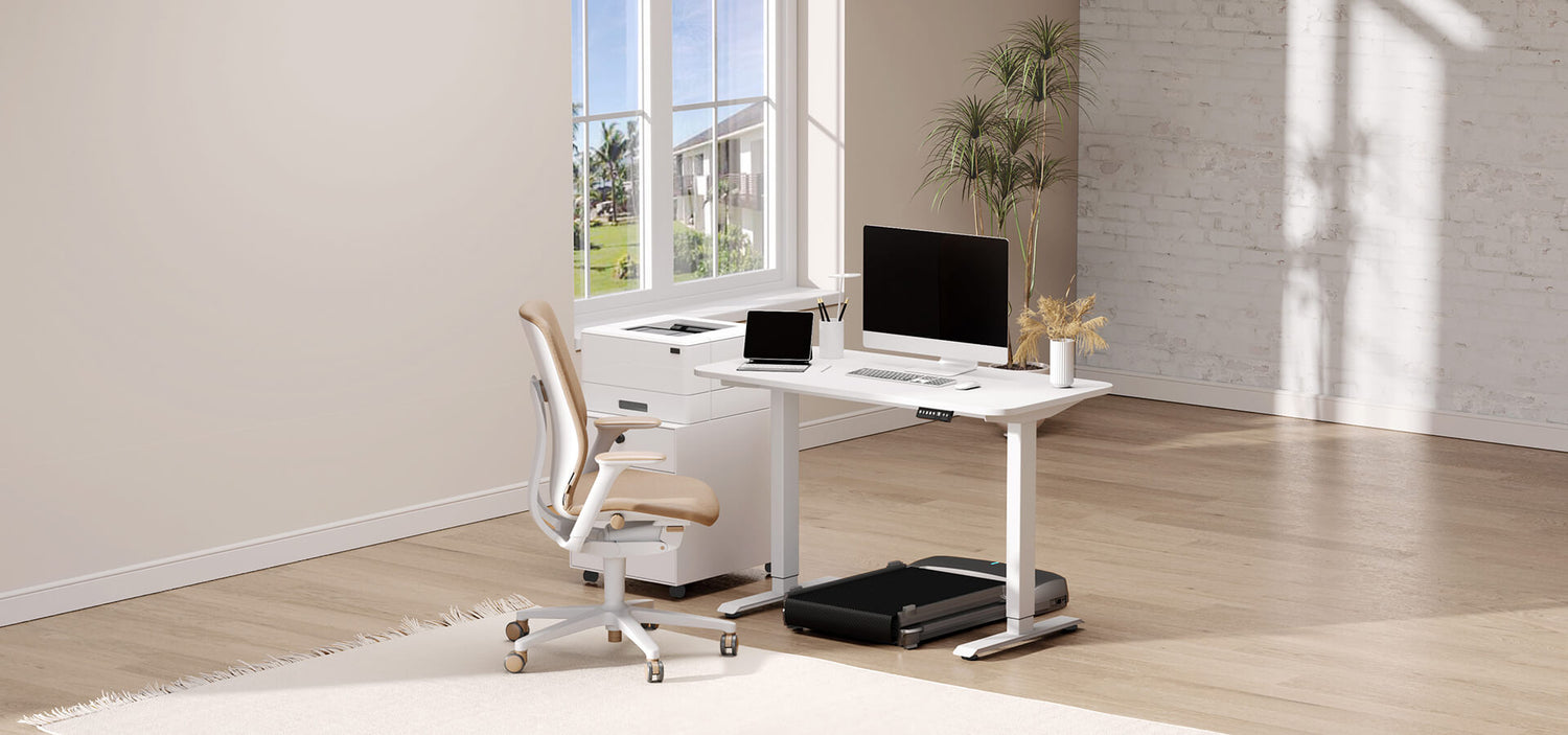 Many people like to combine standing desks with under desk treadmill to relieve the fatigue of sedentary and burn more calories while working. With adjustable height settings that can easily switch between standing and sitting.