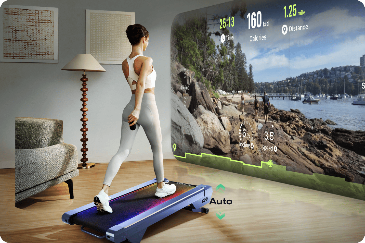 UREVO's SmartCoach automatically adjusts speed and incline based on real city maps, letting you focus on your run while it tailors the workout for you—making fitness immersive and fun.