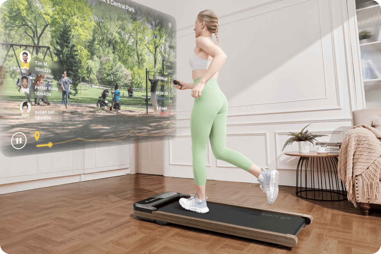 UREVO's SmartCoach automatically adjusts speed and incline based on real city maps, letting you focus on your run while it tailors the workout for you - making fitness immersive and fun.